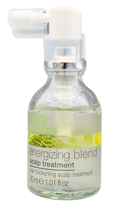 Das Energizing Blend Scalp Treatment verleiht mehr Fülle, Dichte und Glanz. Es enthält organischen Rosmarin und Bio-Salbei-Extrakte, Fioravanti Balsam, Arnika-Extrakt, natürlichen Kampfer, hydrolysiertes Reisprotein und Panthenol.