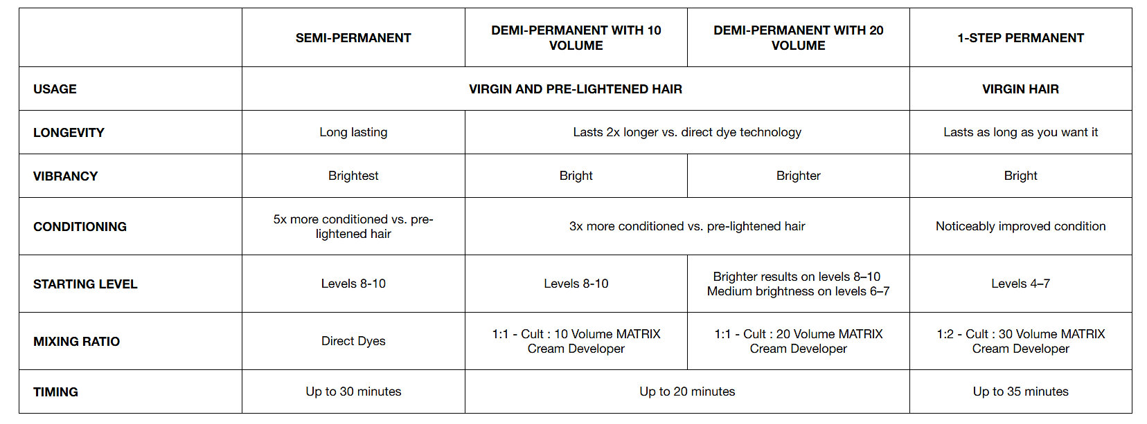 Tipp! Um trendige Töne zu kreieren, ist in vielen Fällen eine vorherige Aufhellung der Haare erforderlich. In diesen Fällen empfehlen wir die Verwendung des Light Master-Systems.