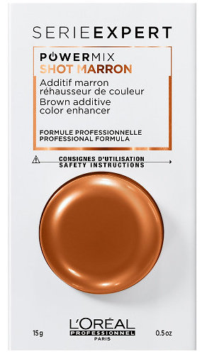 Haarmaskenadditiv mit braunen Pigmenten zur Unterstützung der braunen Haarfarbe und zum Schutz der Farbe vor Ausbleichen und Auswaschen.