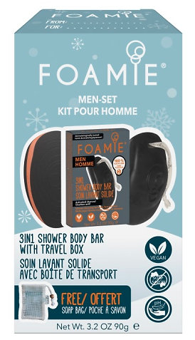Duschpflege-Geschenkpaket für Männer mit Reisebox - ideal zum Spenden.