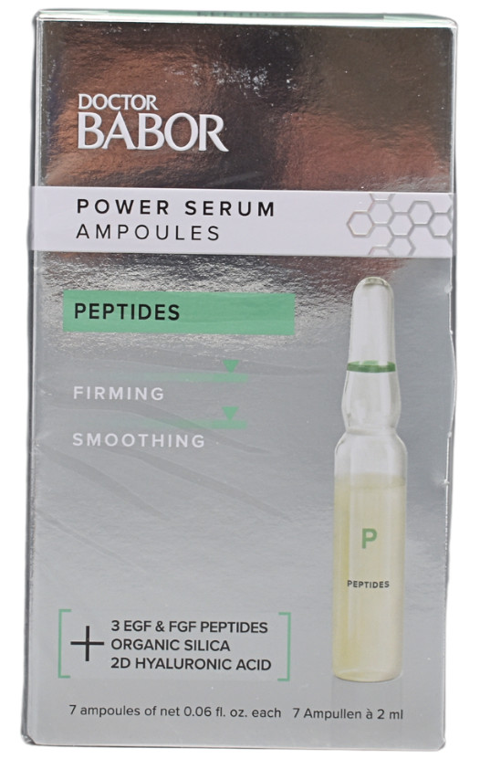 Möchten Sie Ihrer Haut ein jugendliches Aussehen und Festigkeit zurückgeben? Babor Doctor Peptides Ampulle ist ein intensives Serum, das direkt auf die Ursachen der Hautalterung abzielt. Es enthält hochwirksame Peptide, die die natürliche Produktion von Kollagen und Elastin anregen und so helfen, Falten zu glätten, die Elastizität zu verbessern und die Gesichtskonturen zu straffen.