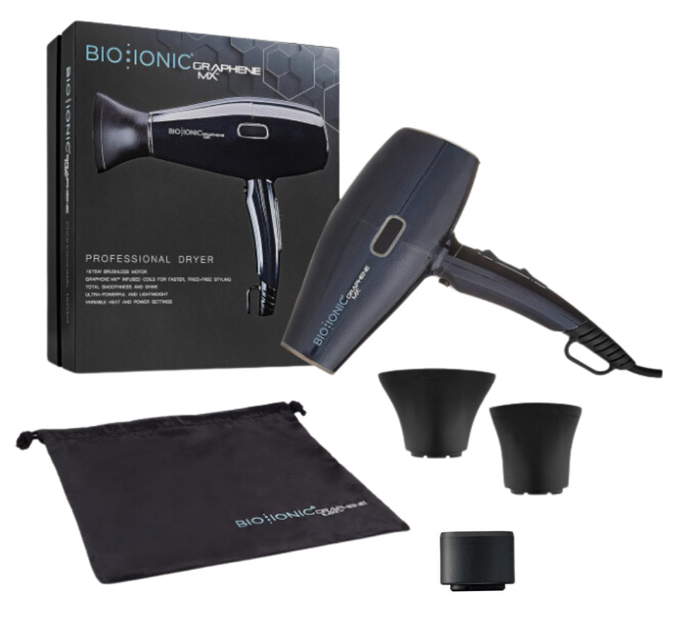 Sind Sie es leid, beschädigtes und krauses Haar zu haben? Mit dem Graphene MX® Dryer von Bio Ionic ist das vorbei! Die patentierte GrapheneMX™-Technologie sorgt für schnelles und gleichmäßiges Trocknen mit minimaler Hitzeschädigung, während feuchtigkeitsspendende Ionen Ihr Haar glätten und ihm einen strahlenden Glanz verleihen. Dank des leistungsstarken Motors und einstellbarer Temperaturen und Geschwindigkeiten können Sie perfektes Salon-Styling bequem zu Hause genießen.