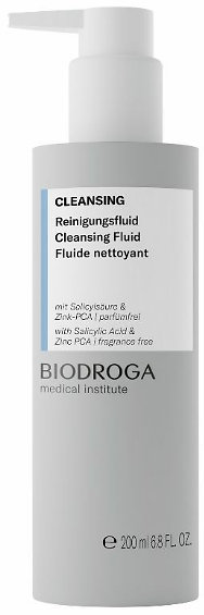 Das hautfreundliche BIODROGA Medical Institute CLEANSING Reinigungsfluid reinigt intensiv und befreit verstopfte Poren von Talgansammlungen und Rückständen. Es unterstützt das pH-Management der Haut und ein ausgeglichenes Hautmikrobiom.