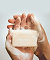 - Das feste Shampoo mit Wasser anfeuchten.