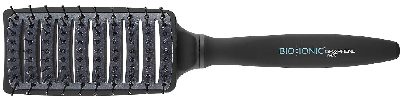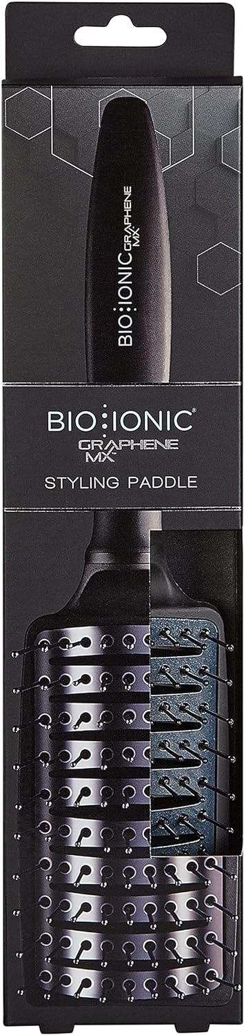 Suchen Sie eine Haarbürste, die Ihnen hilft, schnell und gesund zu stylen, ohne dass die Haare kraus werden? Die Bio Ionic GrapheneMX Styling Paddle Brush ist genau das Richtige für Sie! Dank der innovativen GrapheneMX™-Technologie ermöglicht diese Bürste eine gleichmäßige Wärmeverteilung und das Stylen bei niedrigeren Temperaturen, wodurch die Haare vor Beschädigungen und Austrocknung geschützt werden. Das Ergebnis sind weiche, glänzende und hydratisierte Haare.