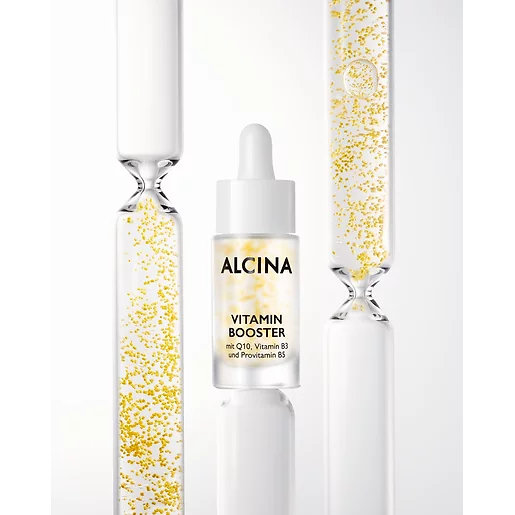 Gönnen Sie Ihrer Haut eine Dosis Vitamine, die ihr ein frisches und glattes Aussehen verleiht, mit dem Alcina Vitamin Booster. Dieser Vitamin-Booster wurde entwickelt, um die Hautstruktur zu perfektionieren und sichtbar zu glätten. Er enthält wirksame aktive Inhaltsstoffe, die die Haut schützen, die Regeneration unterstützen und ein jugendliches Aussehen bewahren.