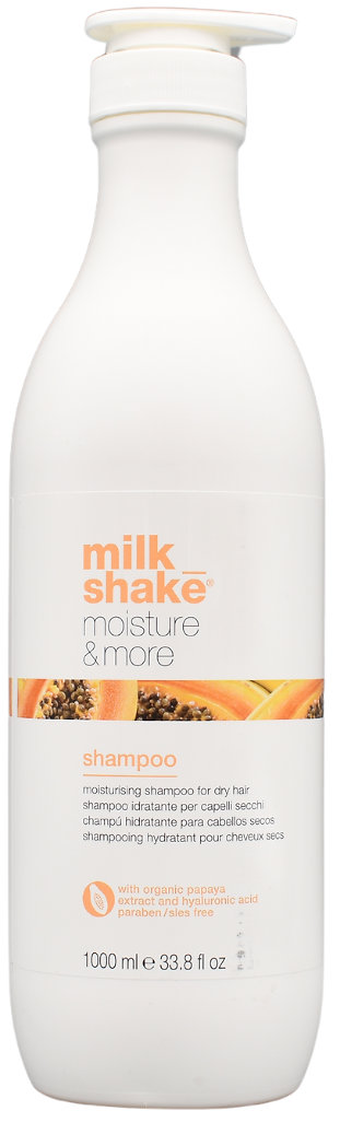 Erleben Sie strahlend hydratisiertes Haar mit dem Milk_Shake Moisture More Shampoo – einem sanften, feuchtigkeitsspendenden Shampoo, das speziell für trockenes Haar entwickelt wurde. Dieses Shampoo bildet einen weichen, fruchtigen Schaum, der das Haar sanft reinigt und gleichzeitig intensive Feuchtigkeit und Pflege verleiht. Angereichert mit Hyaluronsäure, Integrity 41® und Niacinamid stärkt es das Haar, erhöht den Glanz und schützt die Farbe. Das Ergebnis sind gesunde, weiche und geschmeidige Haare voller Leben.