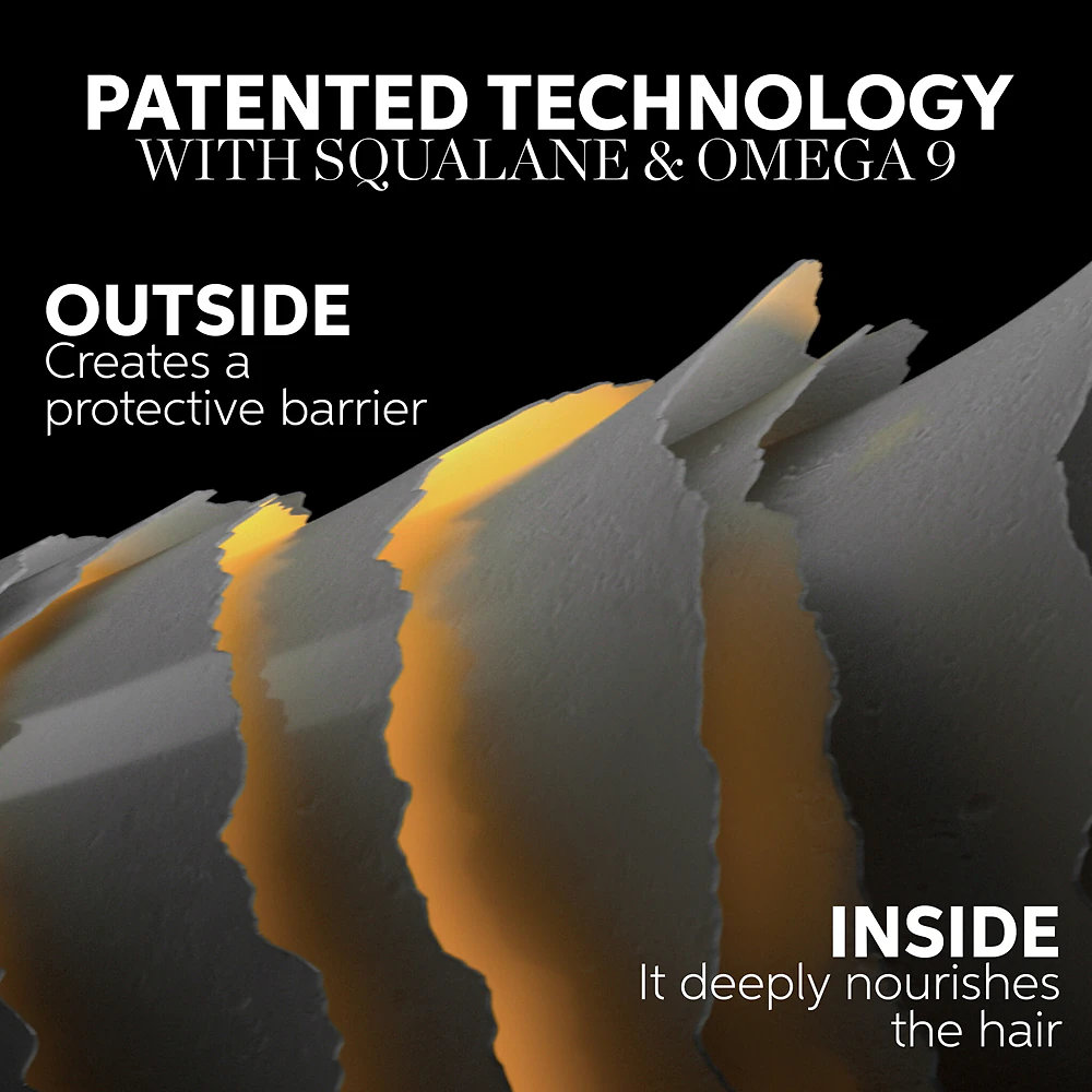 Conditioner mit patentierter Omega-9- & Squalan-Technologie verschließt sofort die Haaroberfläche, pflegt intensiv, glättet und erleichtert das Entwirren bereits nach 30 Sekunden. Die ideale Pflege für dickes, trockenes, krauses und glanzloses Haar, dem es an Glanz und einfacher Handhabbarkeit fehlt. Das Haar bleibt geschmeidig, weich, kontrollierbar und vor Frizz geschützt.