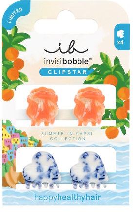 Kleine Details mit großer Wirkung. invisibobble® CLIPSTAR Mediterranean Minis sind stylische Mini-Haarclips aus der Summer in Capri Kollektion, die jeder Frisur eine verspielte, mediterrane Note verleihen. Sie eignen sich perfekt zum schnellen Fixieren kleiner Strähnen, zum Akzentuieren offener Haare oder für feine Details im Styling. Praktisch, leicht und immer griffbereit.
