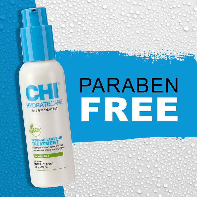 CHI HydrateCare Intense Leave-In Treatment ist eine intensive Leave-in-Pflege für trockenes und strapaziertes Haar. Die leichte Formel spendet Feuchtigkeit, stellt die Vitalität des Haares wieder her und schützt es vor Schäden und Austrocknung. Durch den Ausgleich des Feuchtigkeitshaushalts wird das Haar weich, geschmeidig und besser kämmbar.