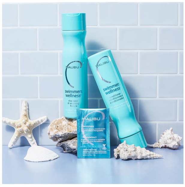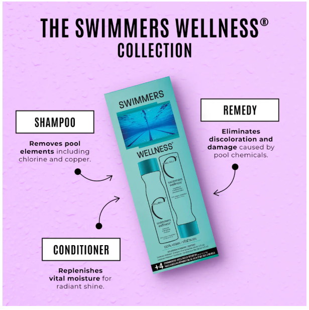 Ein spezielles Set für Schwimmer und alle, deren Haare mit Chlor und Mineralien aus Poolwasser in Kontakt kommen. Es hilft, Chlor, Kupfer und andere Stoffe zu entfernen, die Trockenheit, Verfilzungen und unerwünschte Grünstiche verursachen können.